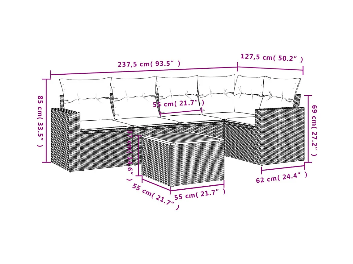 Set Divano da Giardino 5 pz con Cuscini Grigio in Polyrattan