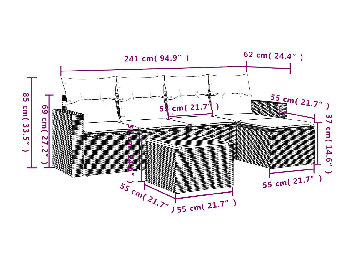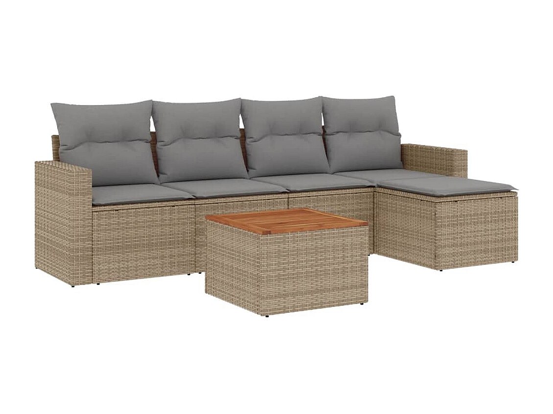 Set Divano da Giardino 6 pz con Cuscini Beige Misto Polyrattan