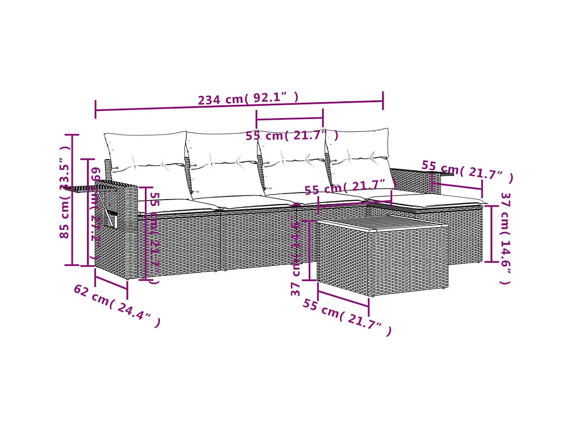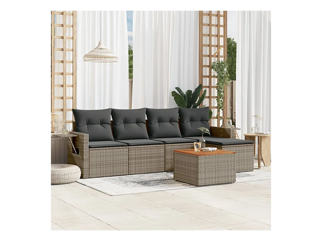 Mobili da giardino 5 pezzi con cuscini in resina intrecciata grigia