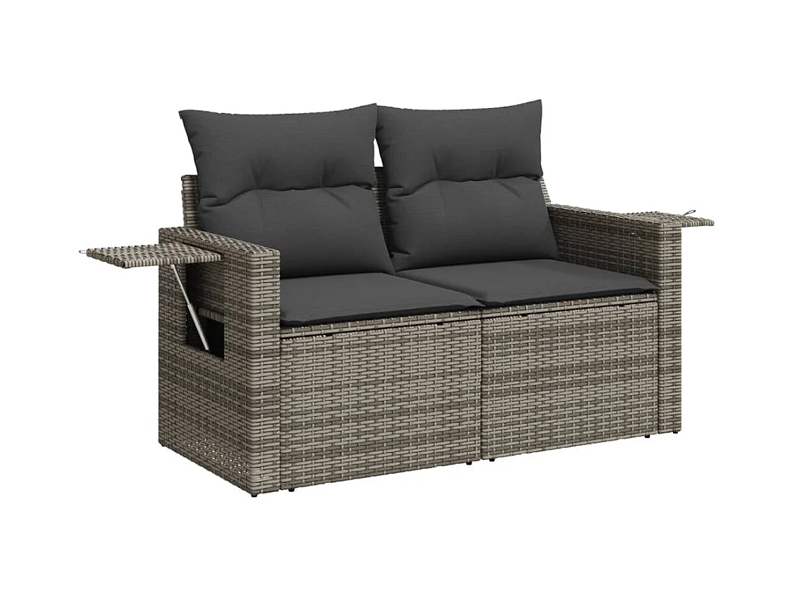 Mobile da giardino con cuscini 7 pezzi in resina intrecciata grigia