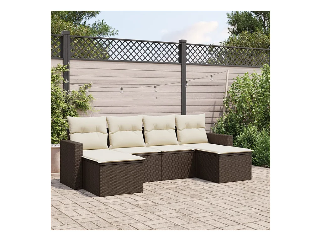 Mobile da giardino con cuscini 6 pz in resina intrecciata marrone