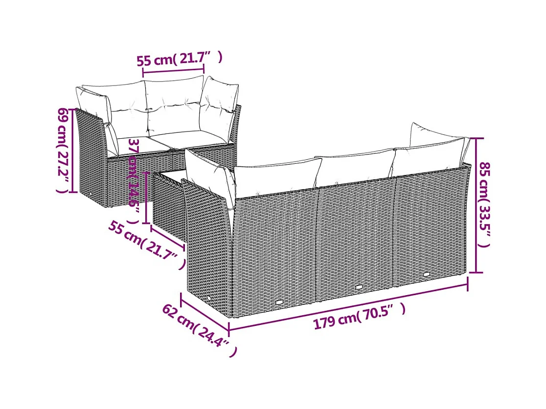 Set Divani da Giardino con Cuscini 7pz Nero Polyrattan