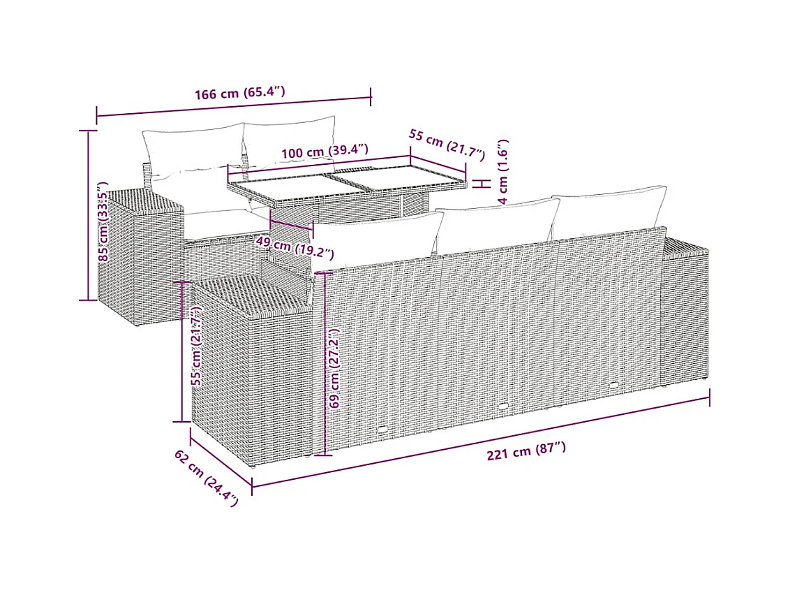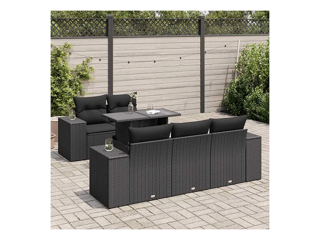 Set Divano da Giardino 6 pz con Cuscini Nero in Polyrattan