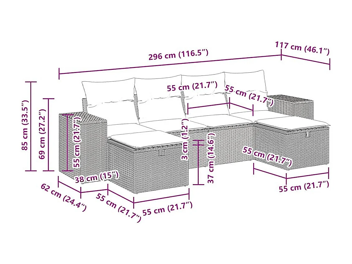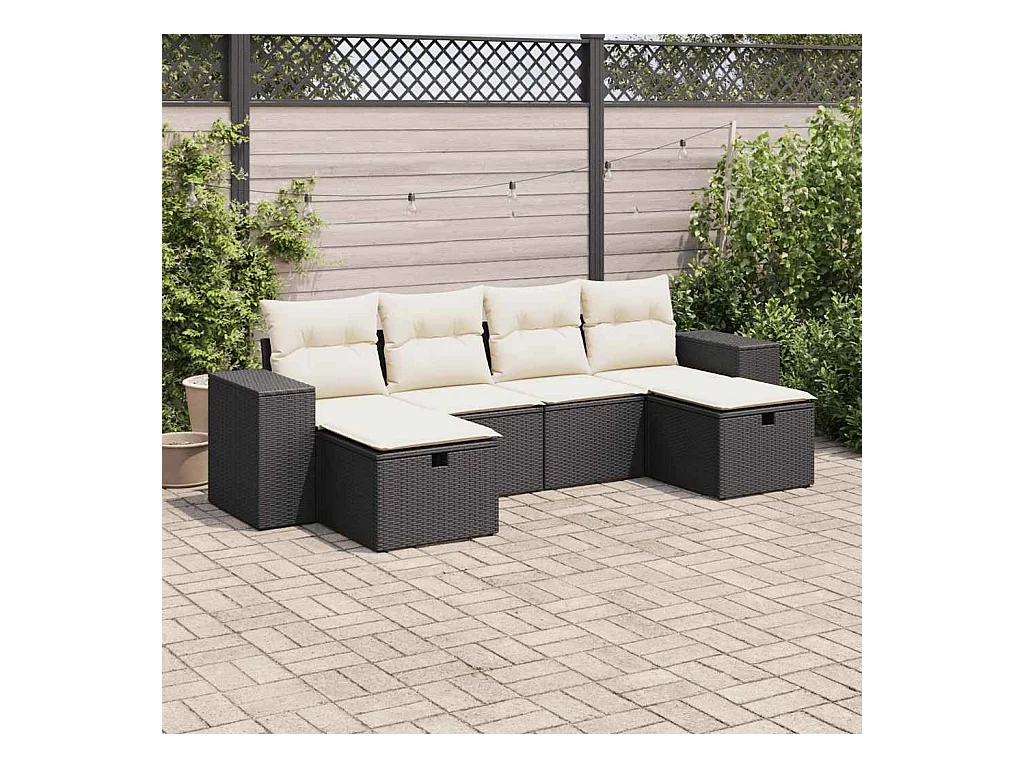 Set Divano da Giardino 6 pz con Cuscini Nero in Polyrattan