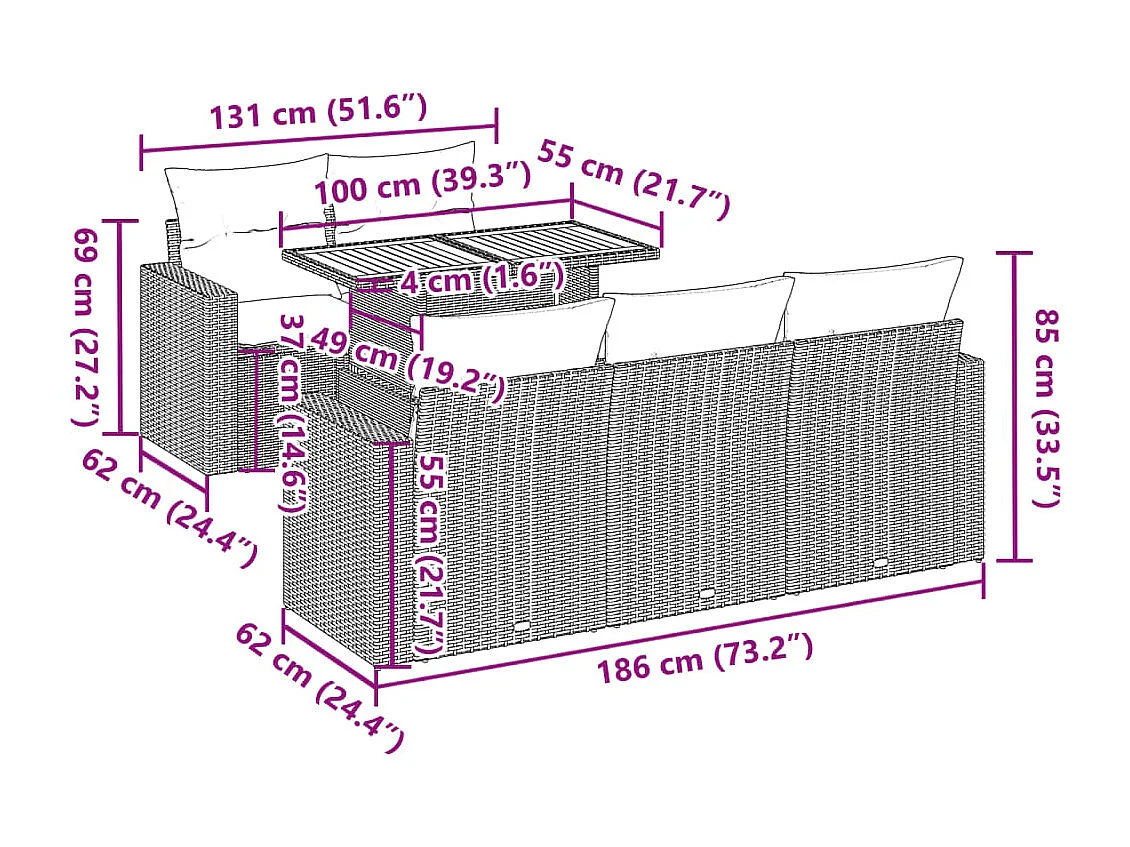 Set Divano da Giardino 6 pz con Cuscini Nero in Polyrattan