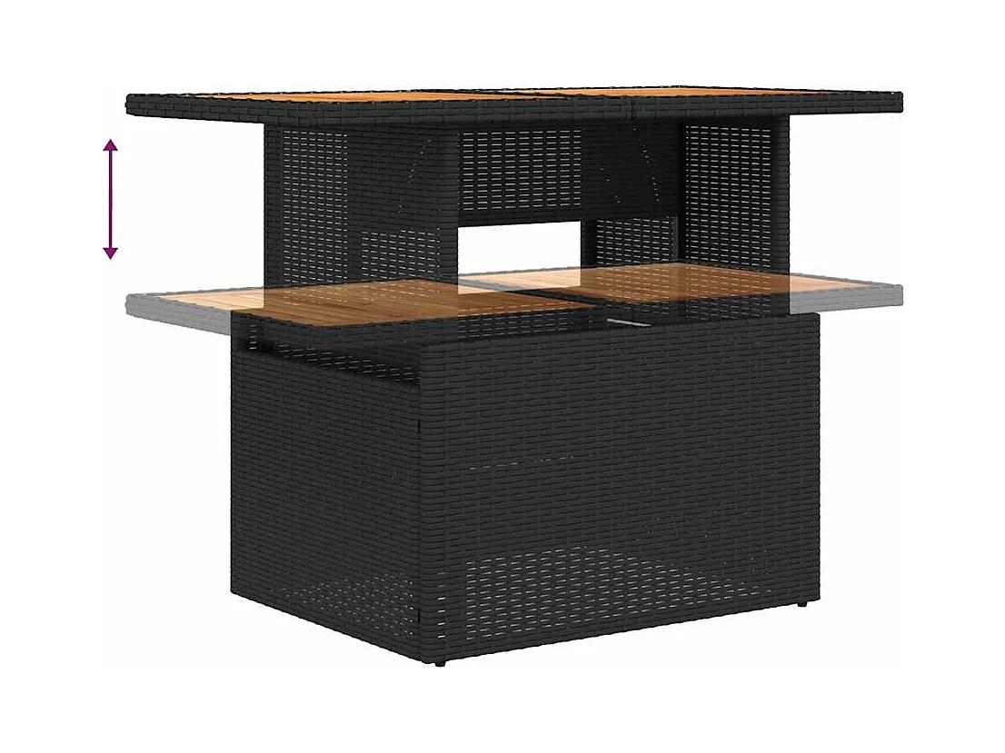 Set Divani da Giardino 9 pz con Cuscini Nero Polyrattan Acacia
