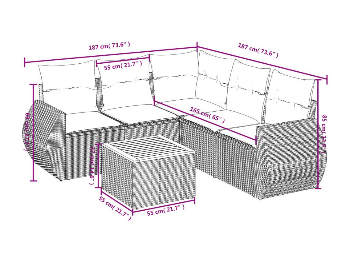 Set Divano da Giardino 6 pz con Cuscini Nero in Polyrattan