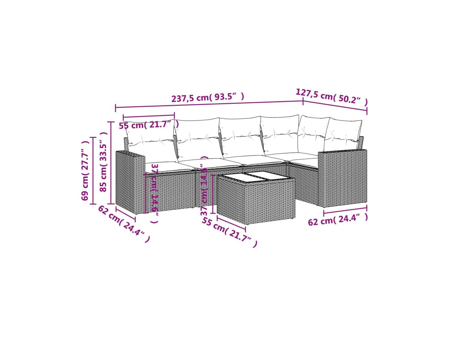 Set Divano da Giardino 6 pz con Cuscini Nero in Polyrattan