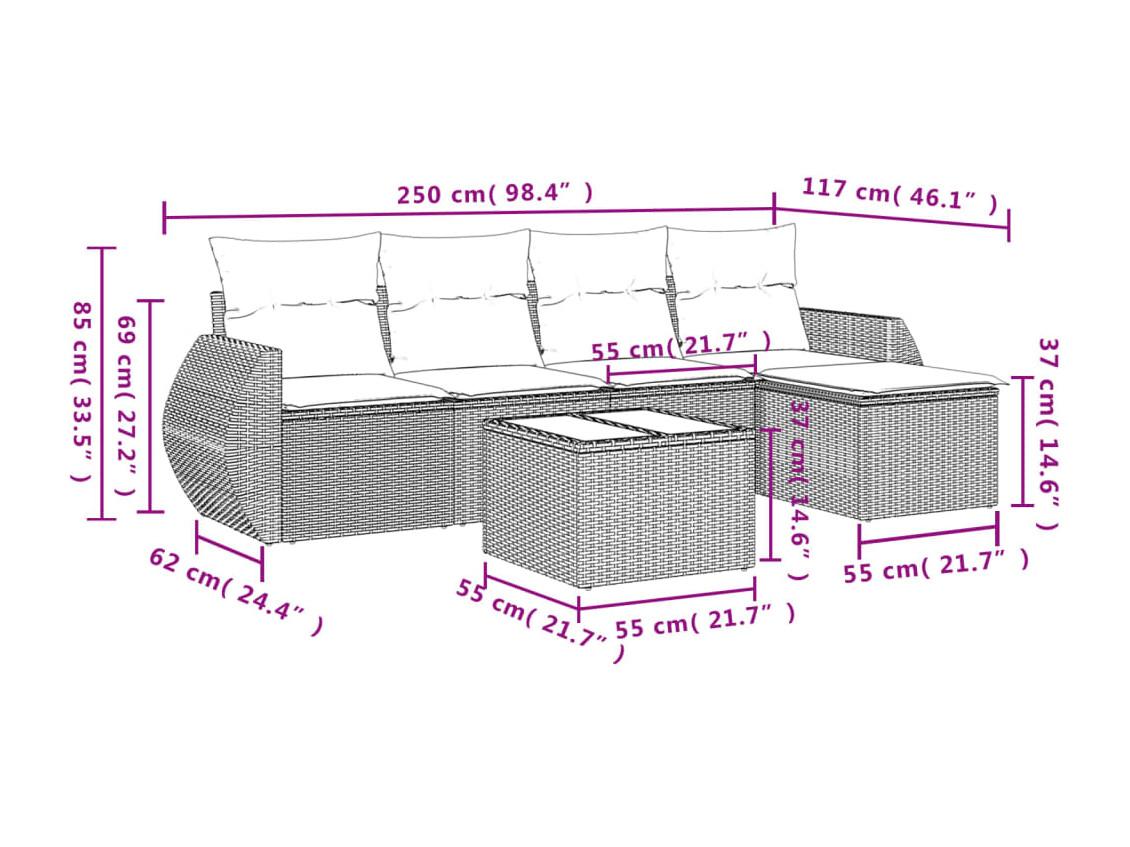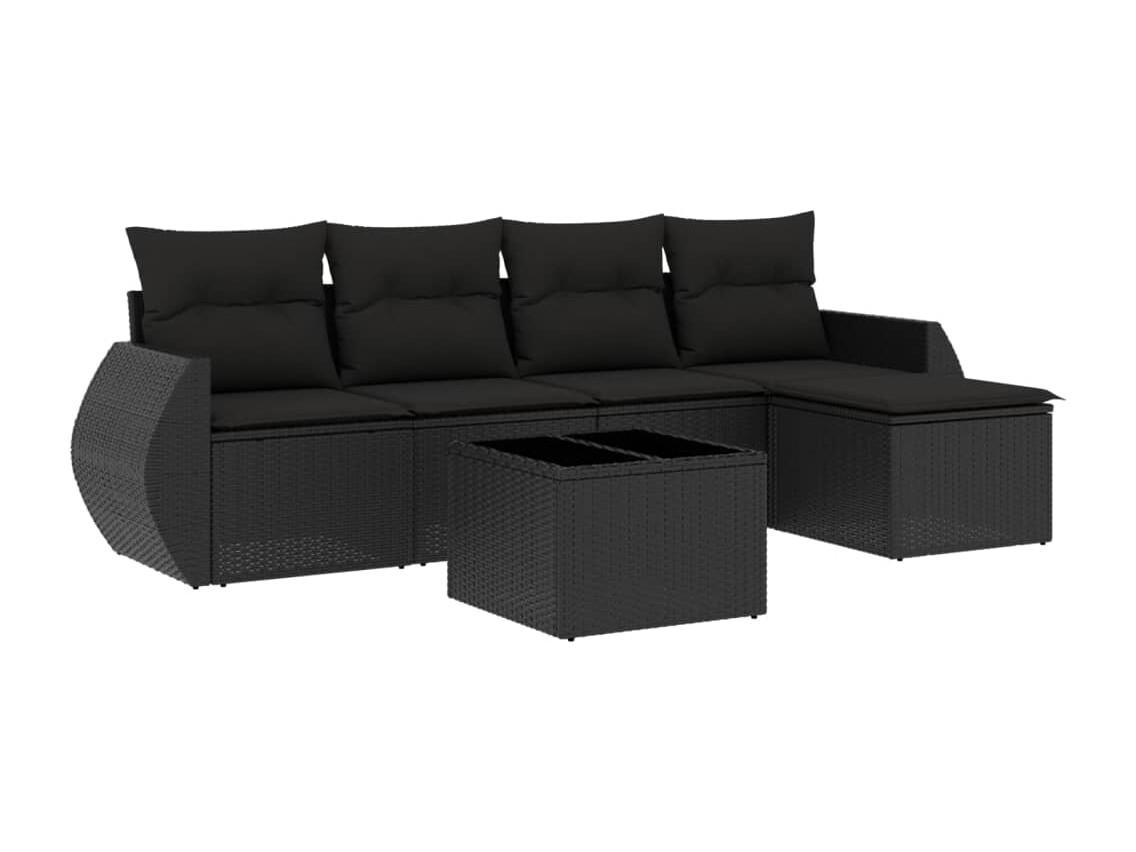 Set Divano da Giardino 6 pz con Cuscini Nero in Polyrattan