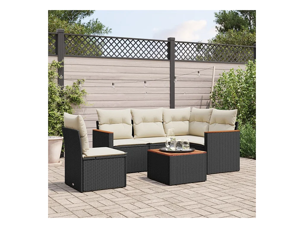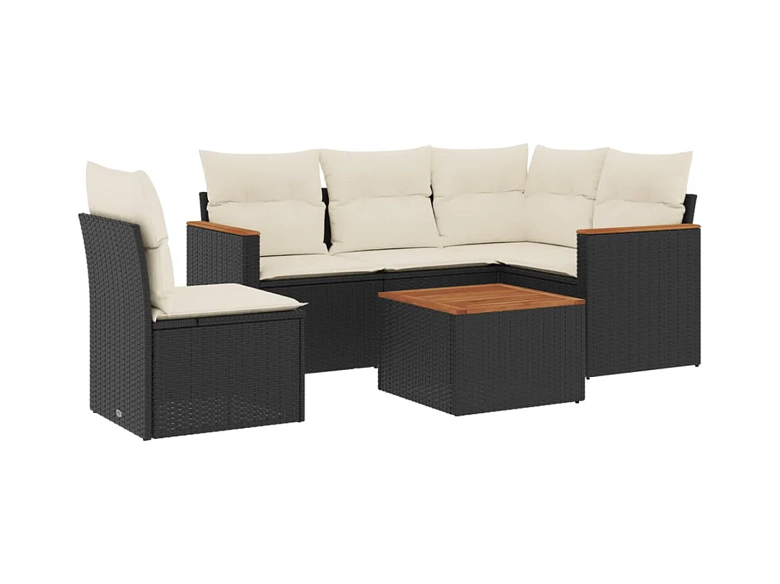 Set Divano da Giardino 6 pz con Cuscini Nero in Polyrattan