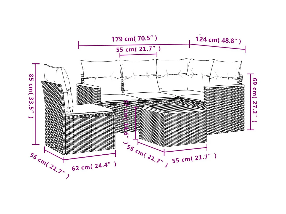 Set Divani da Giardino 5 pz con Cuscini in Polyrattan Nero