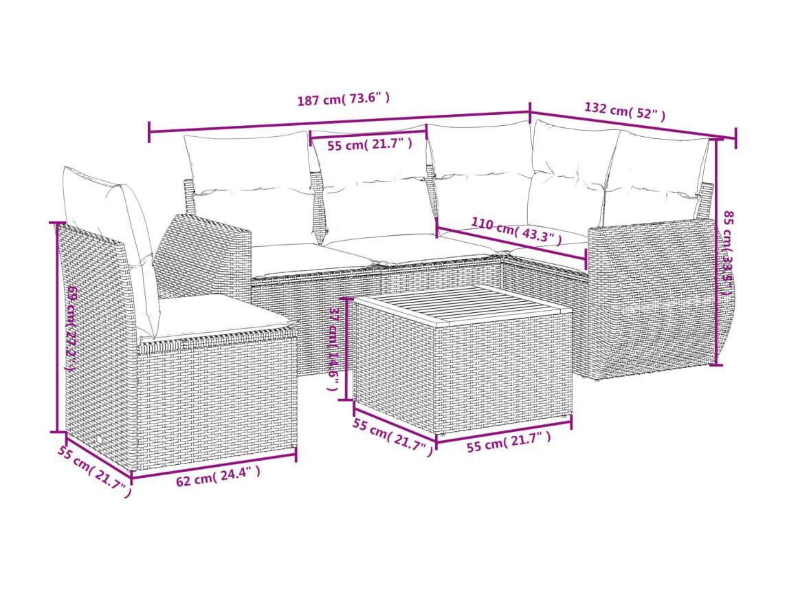 Set Divano da Giardino 6 pz con Cuscini Nero in Polyrattan
