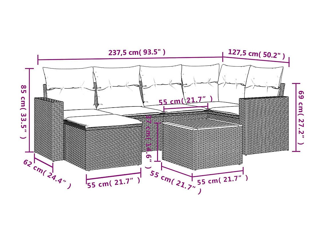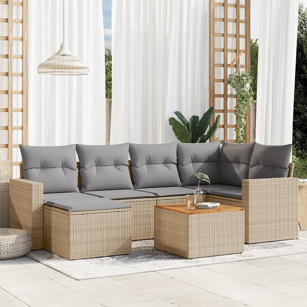 Set Divano da Giardino 7 pz con Cuscini Beige Misto Polyrattan