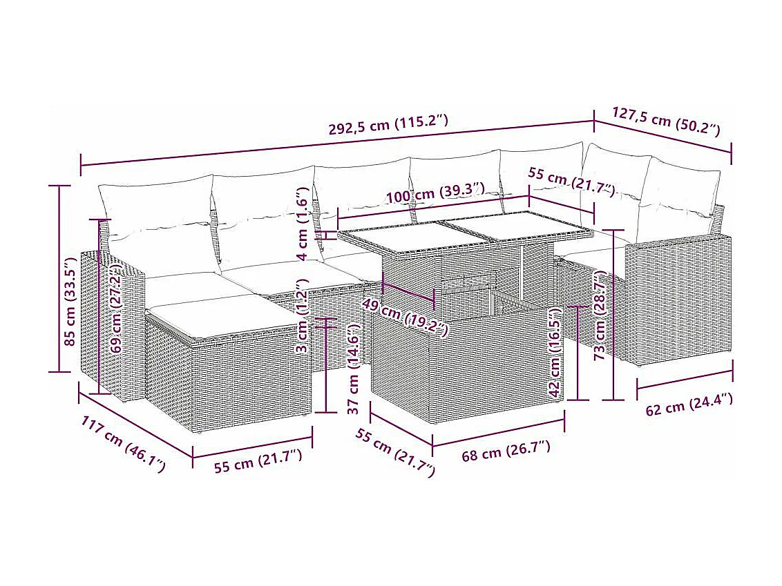Set Divano da Giardino 8 pz con Cuscini Beige in Polyrattan