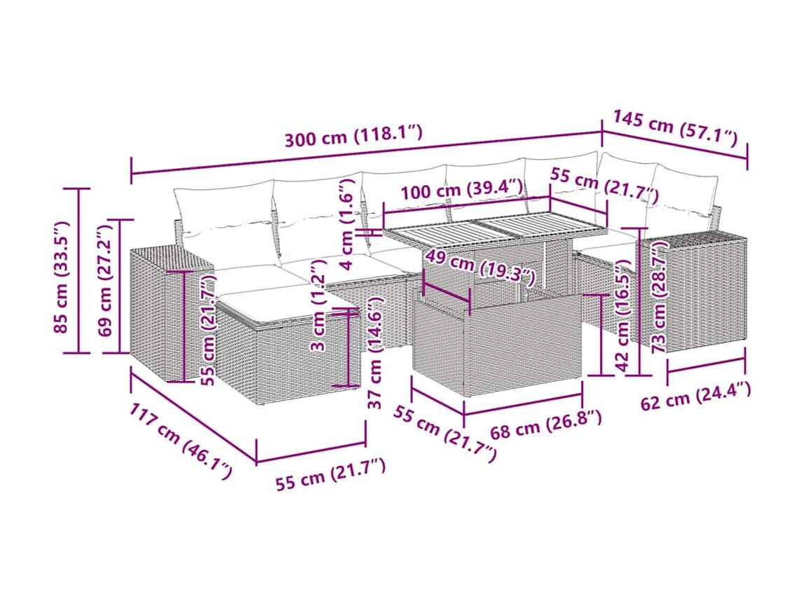 Set Divano da Giardino 8 pz con Cuscini Beige in Polyrattan