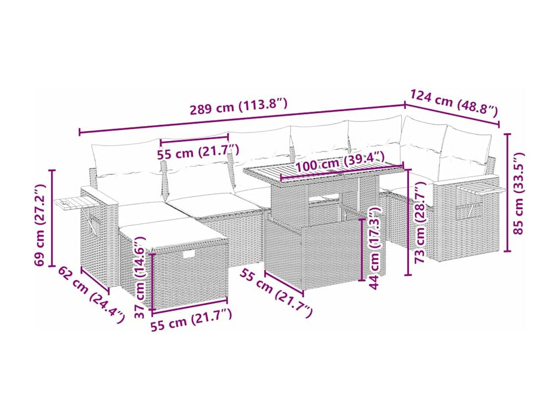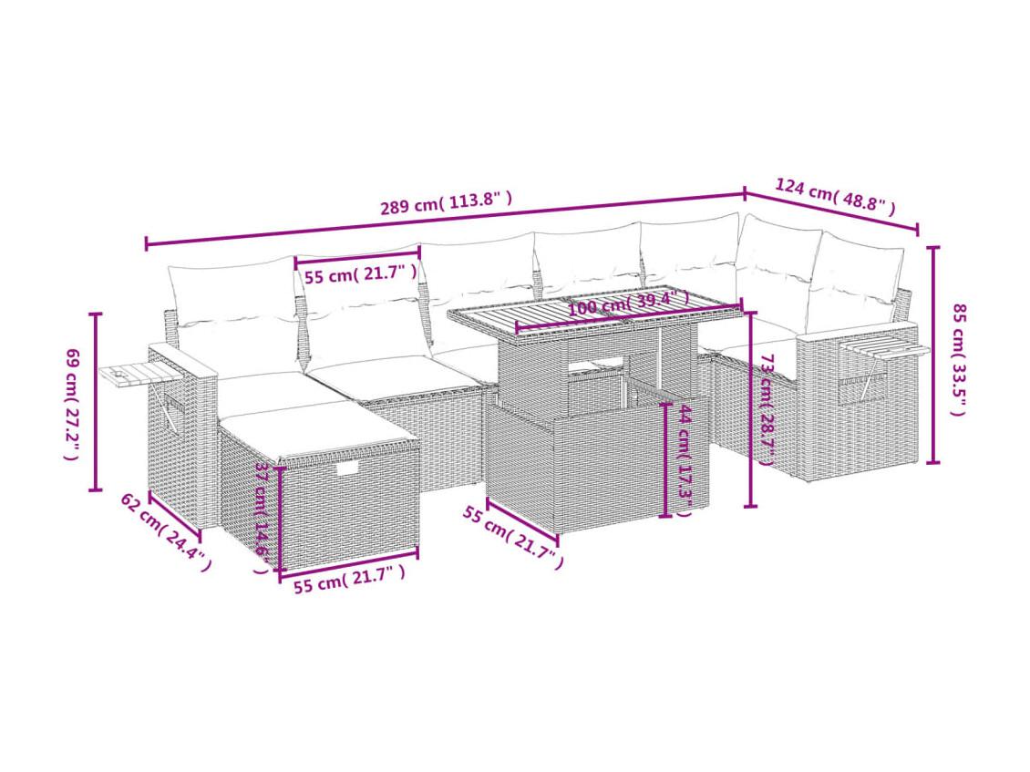 Set Divano da Giardino 8 pz con Cuscini Beige in Polyrattan