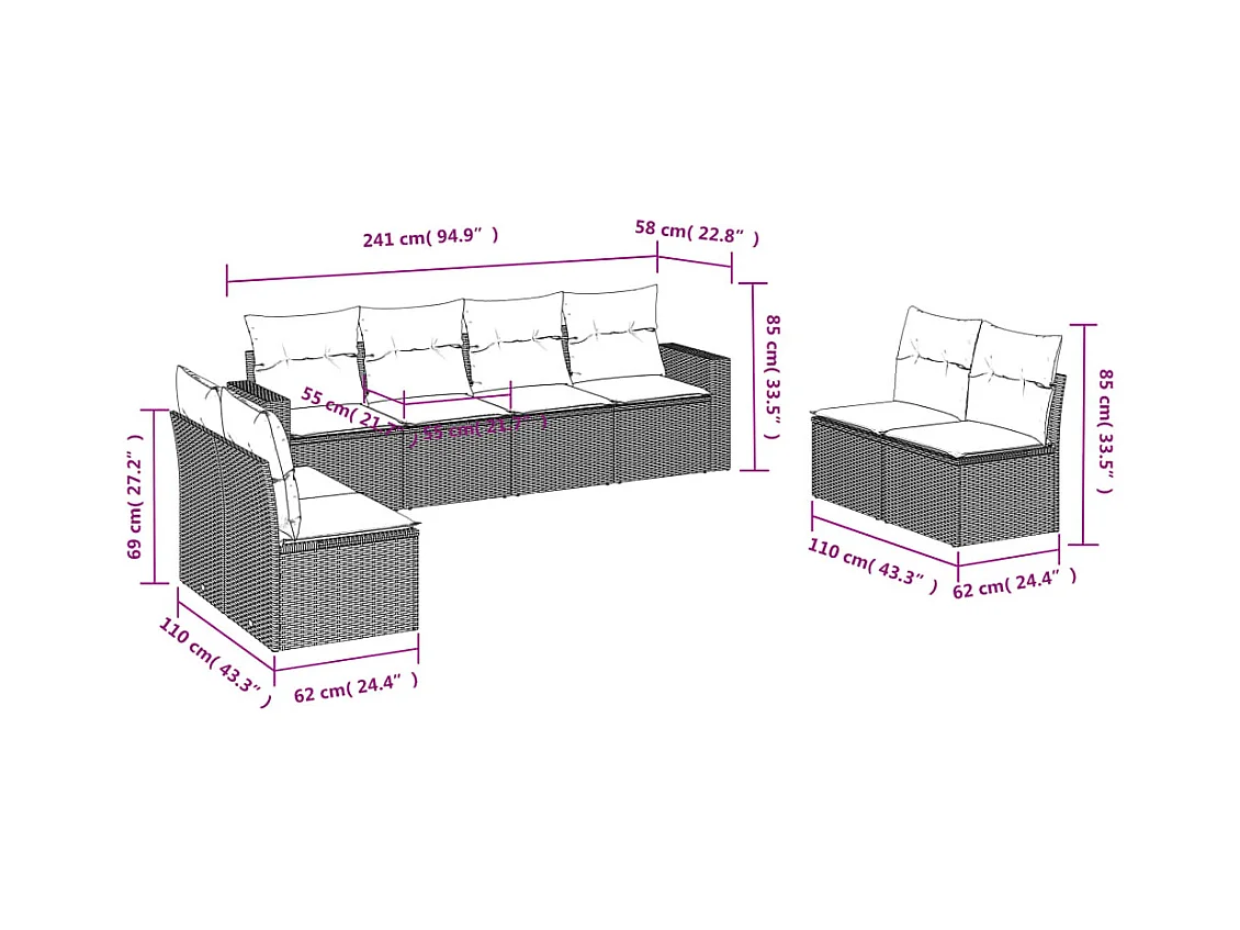 Mobile da giardino con cuscini 8 pz in resina intrecciata beige