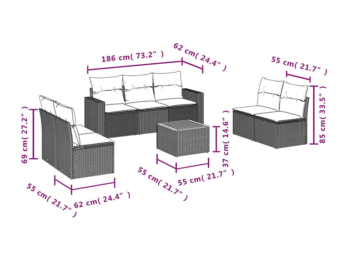Set Divani da Giardino 7 pz con Cuscini Grigio in Polyrattan