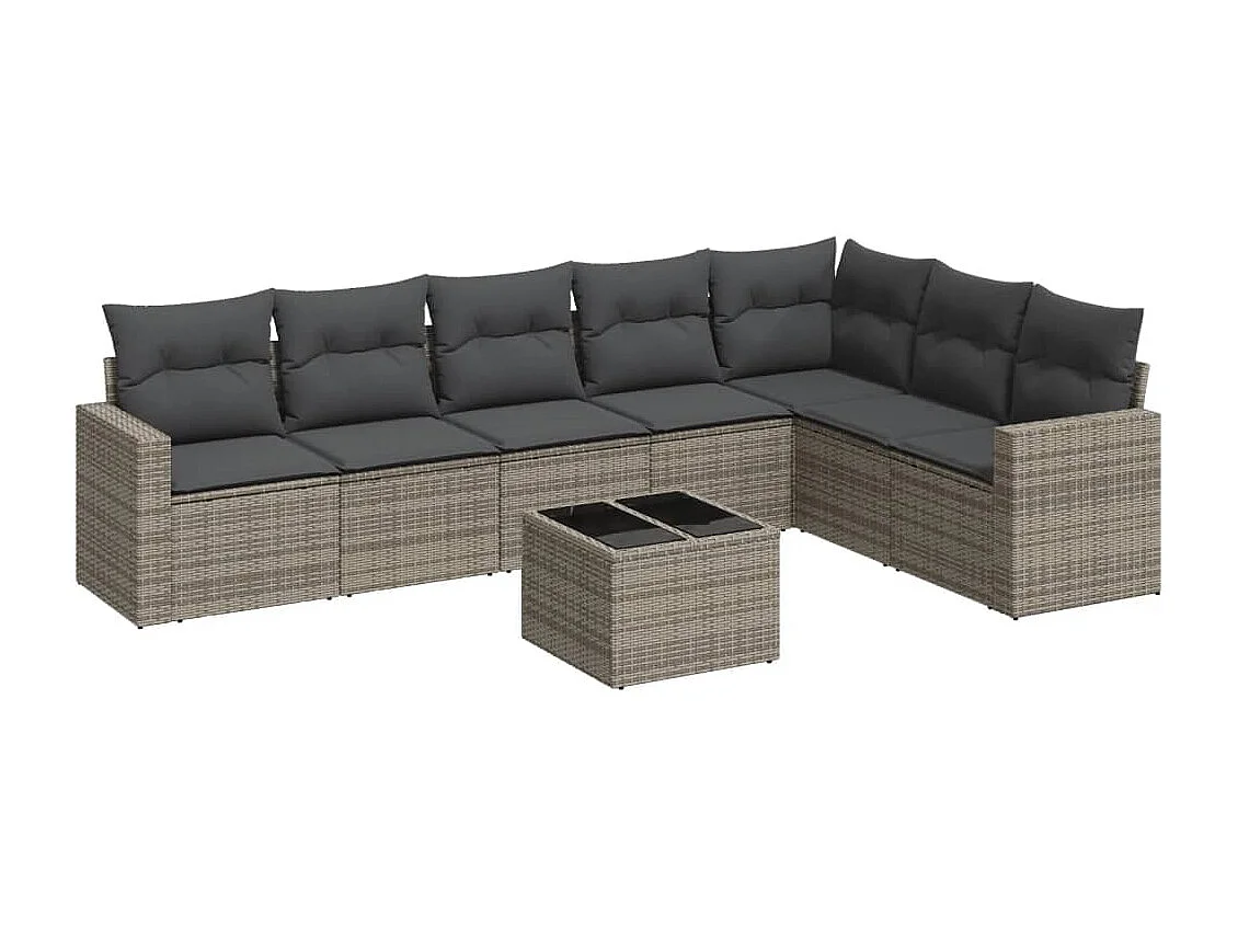 Mobili da giardino da 8 pezzi con cuscini in resina intrecciata grigia