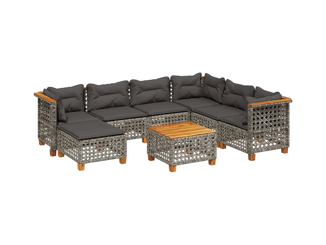 Set Divano da Giardino 9 pz con Cuscini Grigio in Polyrattan