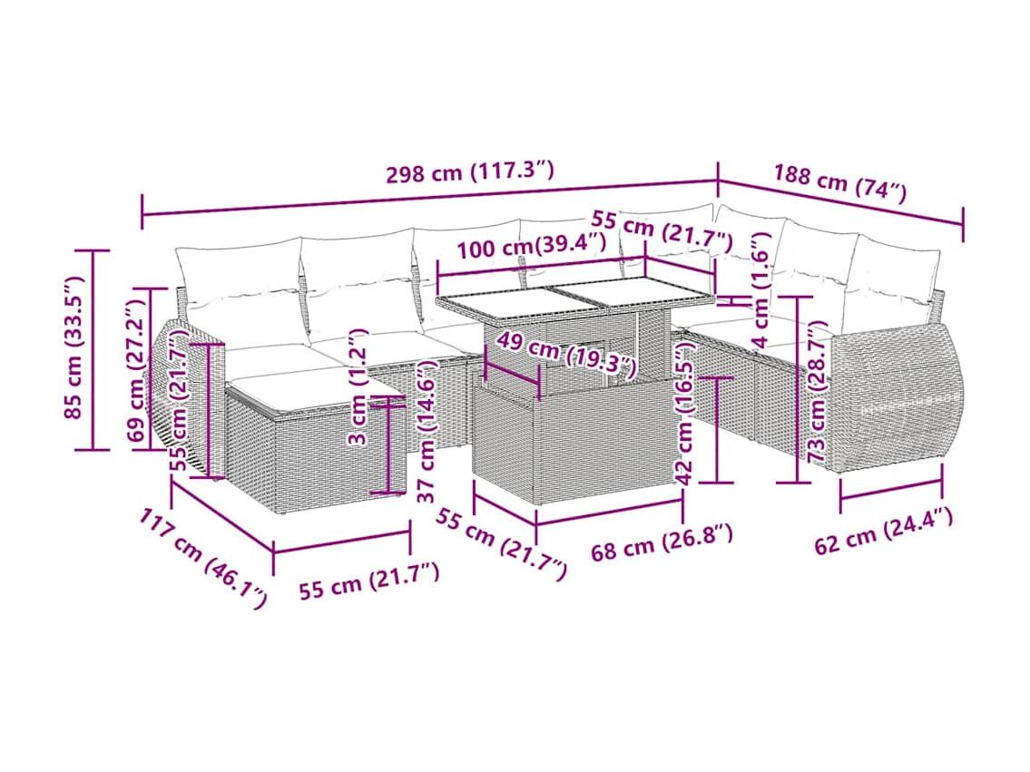 Set Divano da Giardino 9 pz con Cuscini Beige in Polyrattan