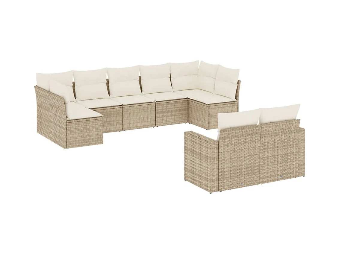 Mobile da giardino con cuscini 8 pz in resina intrecciata beige