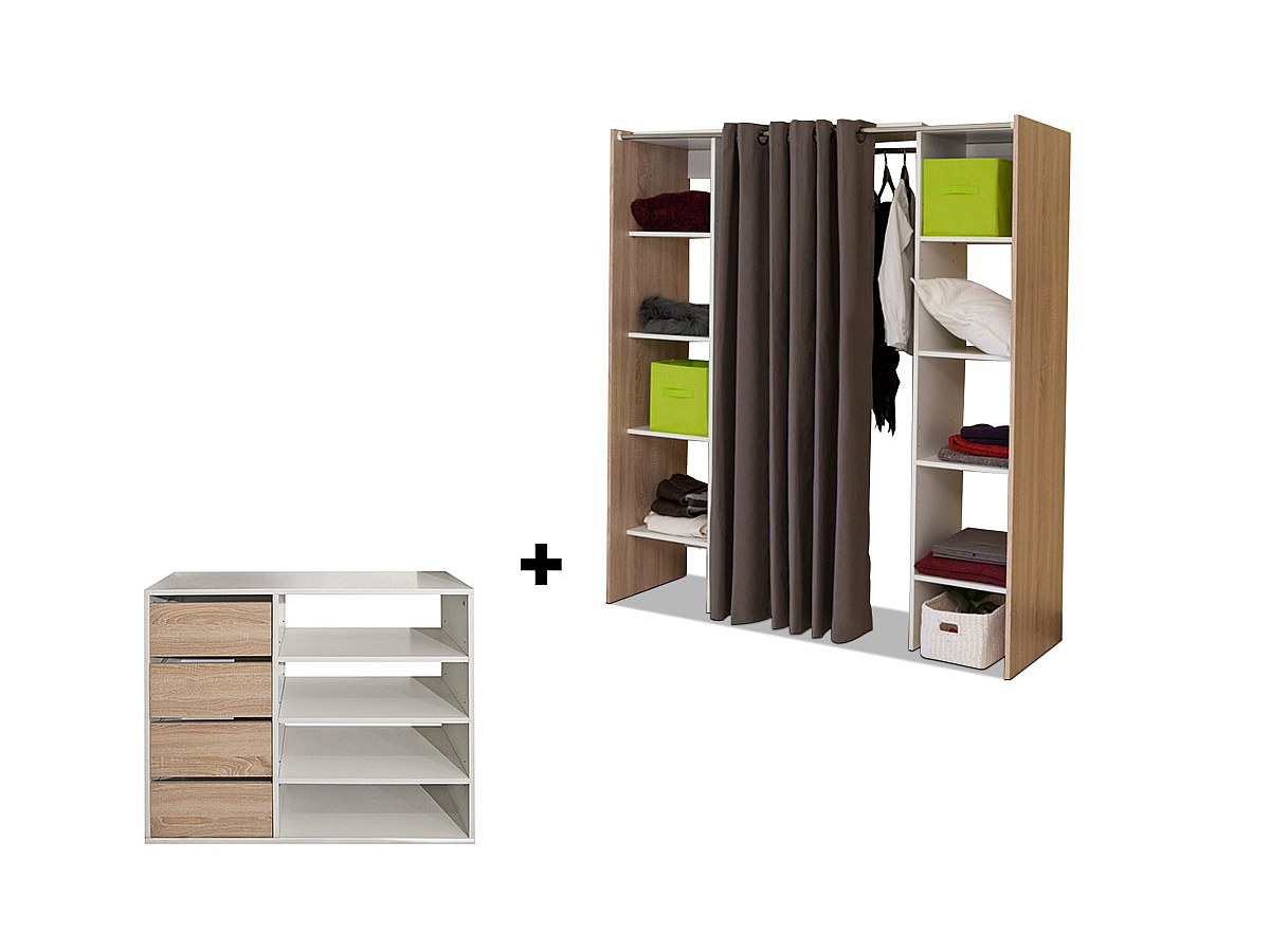 Set guardaroba estensibile + credenza Quercia e Tortora- EMERIC