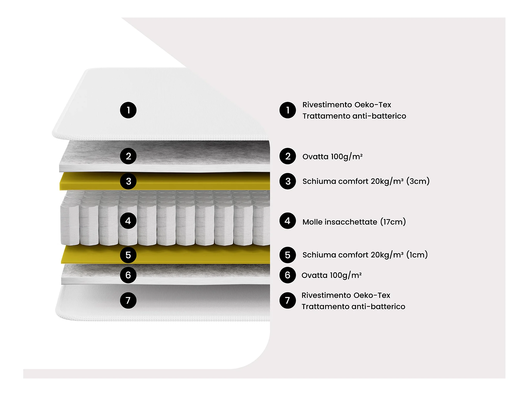 Set letto 140x190cm: Rete contenitore Naturale chiaro + Mater.molle insacchettate - PRESTIGE di YSMÉE