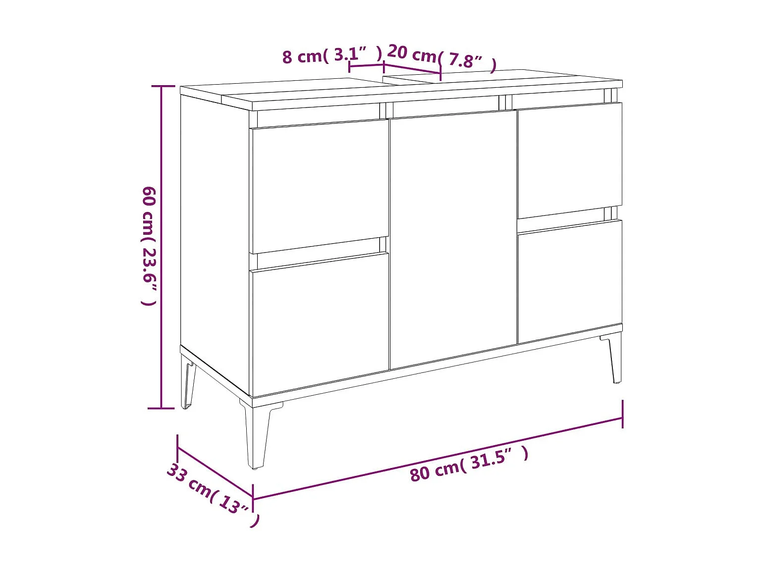 Mobile lavabo bagno rovere marrone 80x30x60 cm