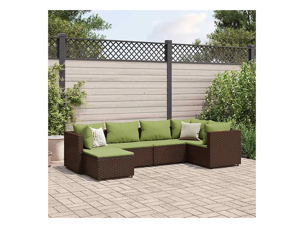 Set Divani da Giardino 7 pz con Cuscini Marrone in Polyrattan