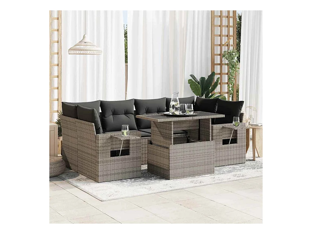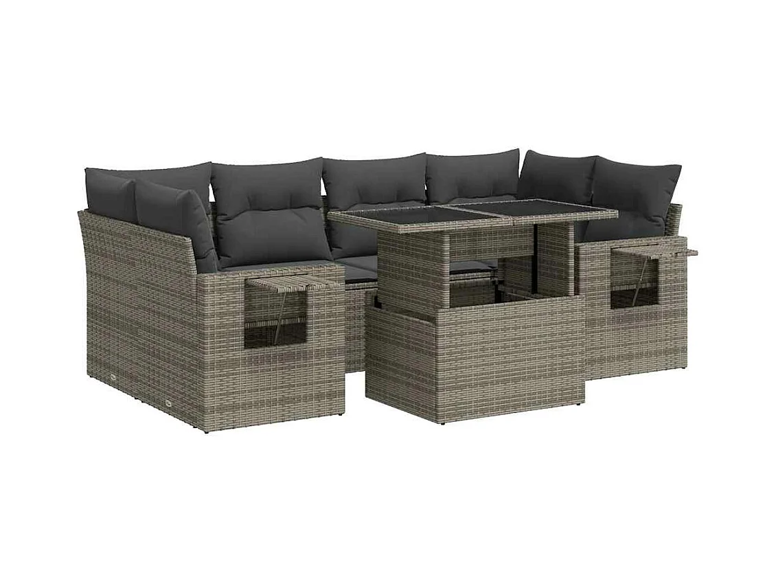 Set mobili da giardino con cuscini 7 pezzi in resina intrecciata grigia