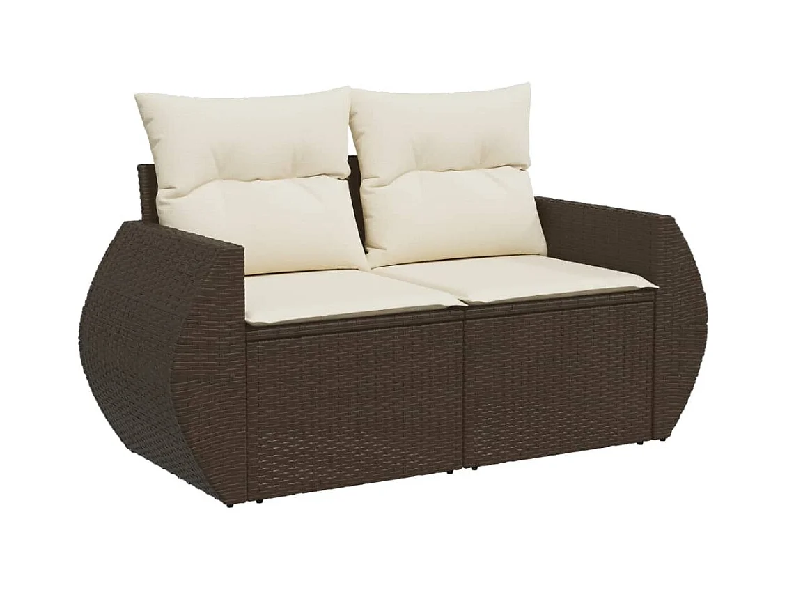 Set di mobili da giardino con cuscini 3 pezzi in resina intrecciata marrone