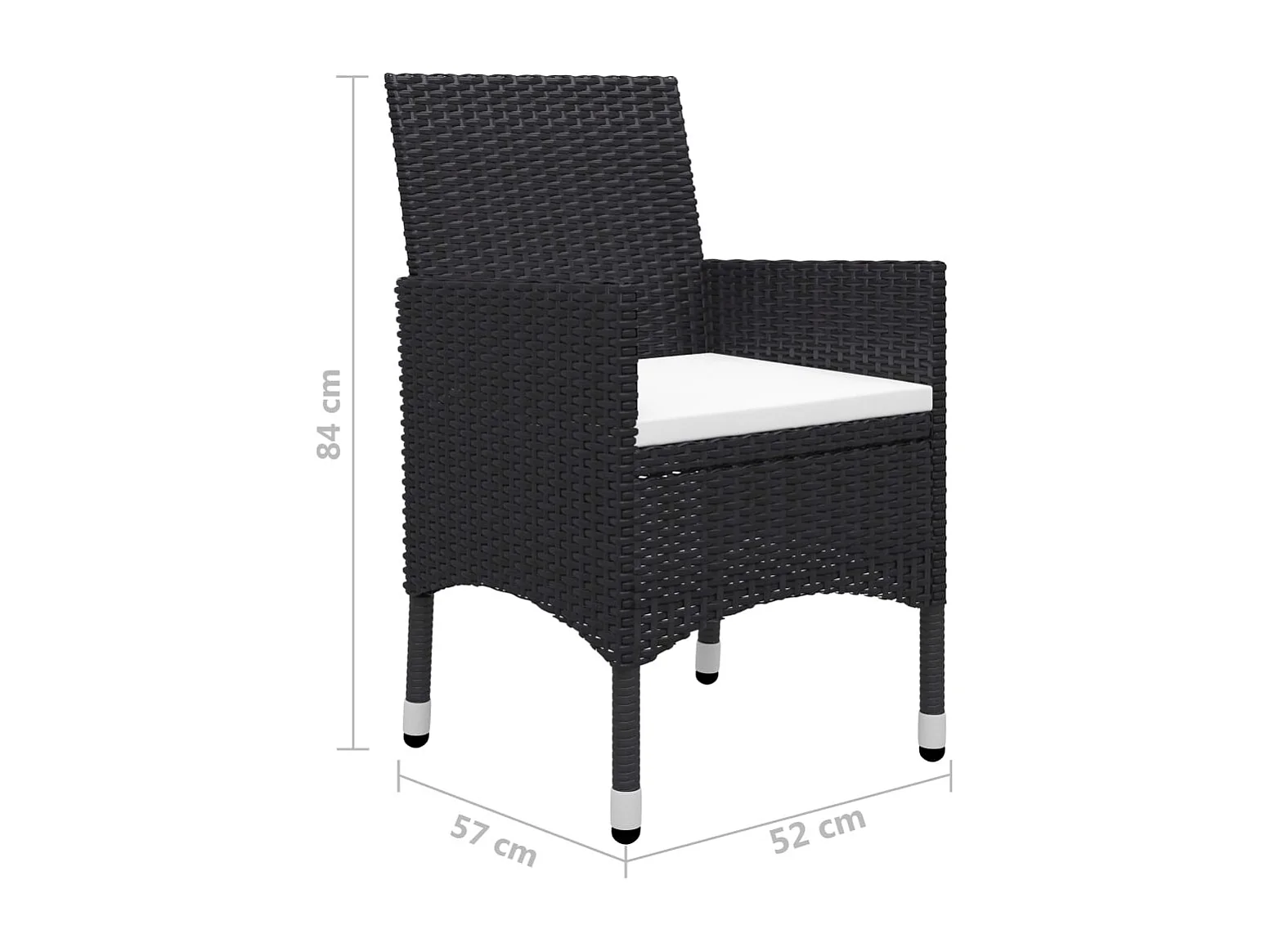 Set da Bistrò 3 pz con Cuscini Nero in Polyrattan