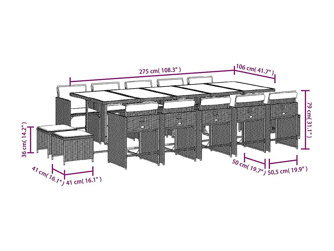 Set Pranzo da Giardino 15 pz con Cuscini Beige Misto Polyrattan