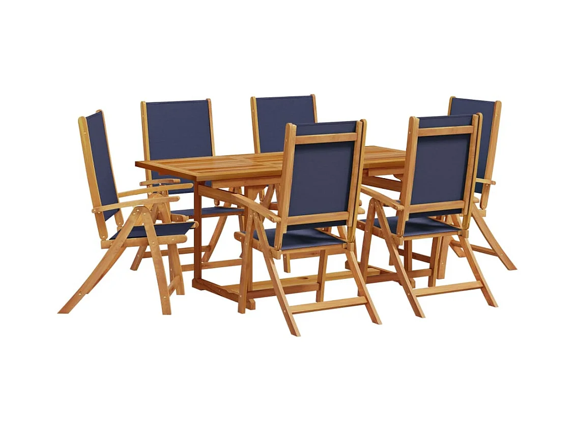 Set Pranzo da Giardino 7pz Legno Massello di Acacia e Textilene