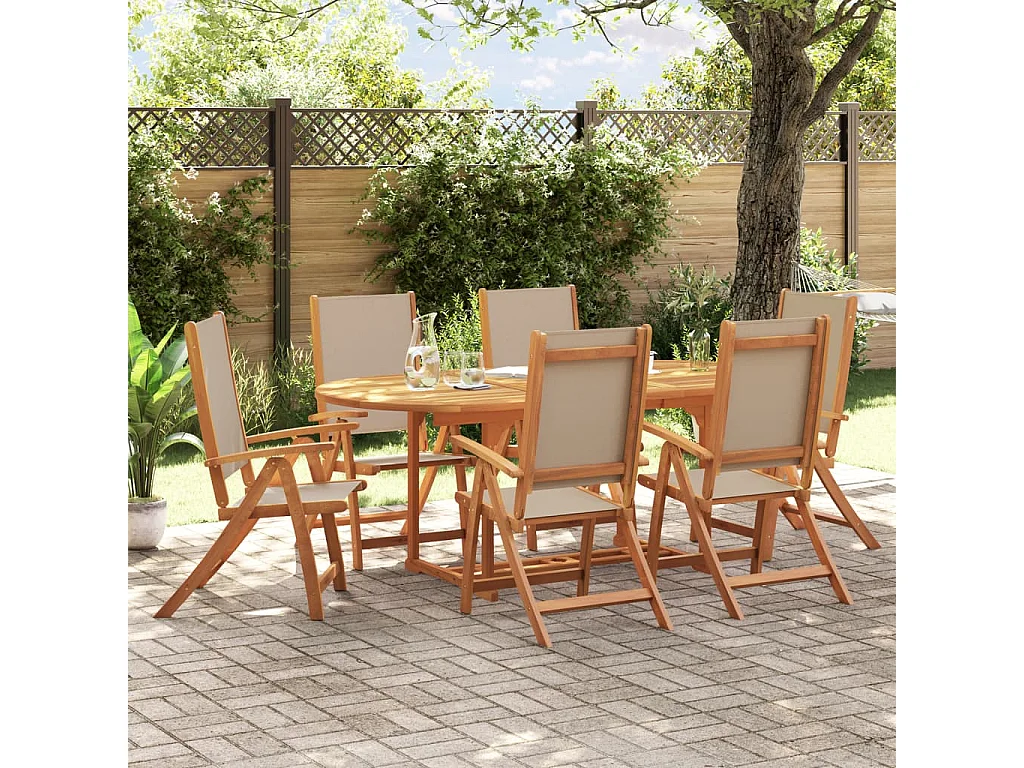 Set Pranzo da Giardino 7pz Legno Massello di Acacia e Textilene