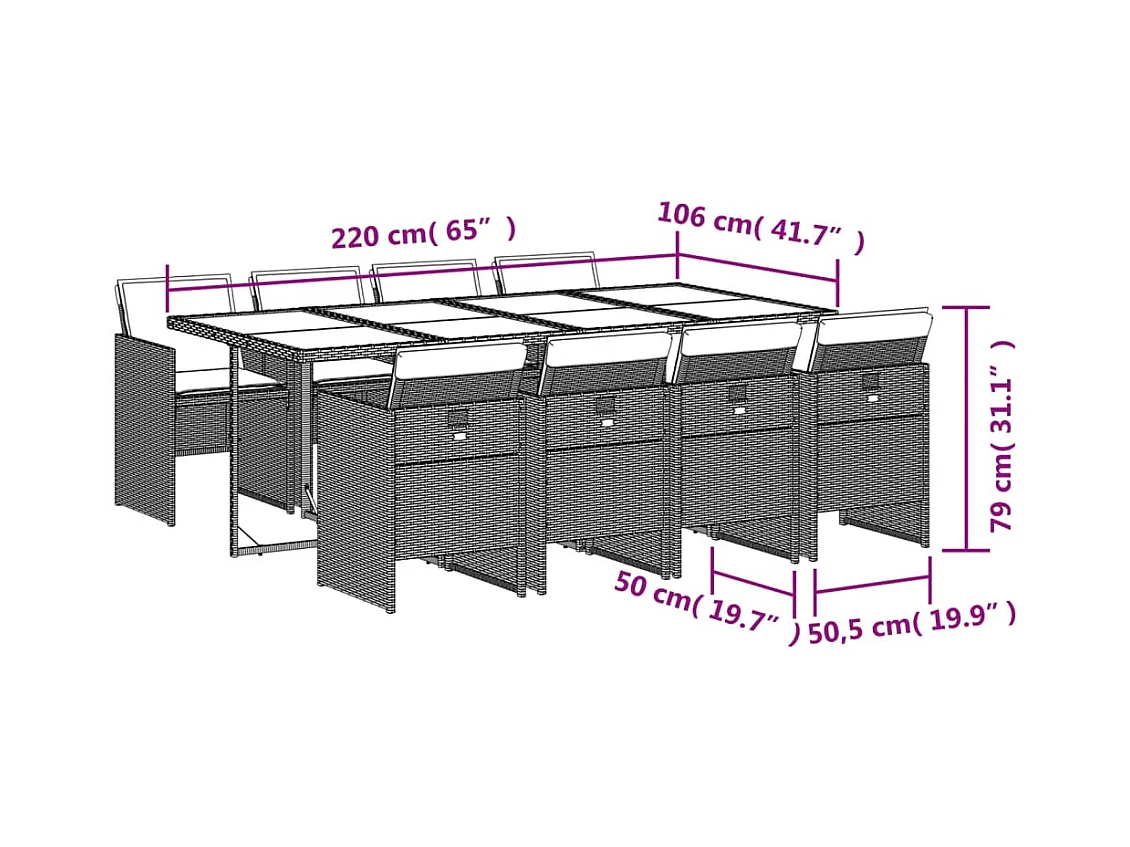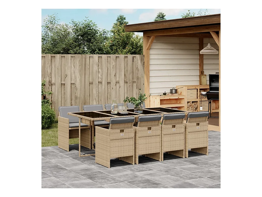 Set Pranzo da Giardino 9 pz con Cuscini Beige Misto Polyrattan