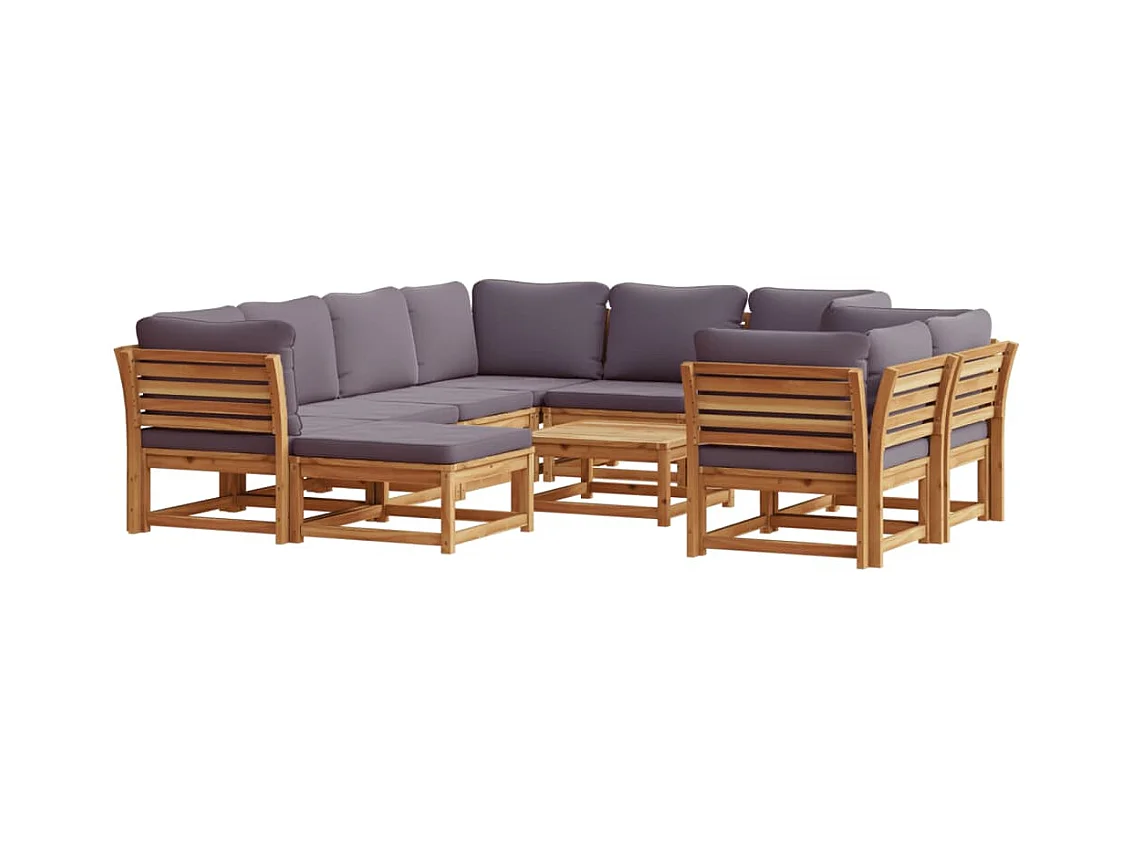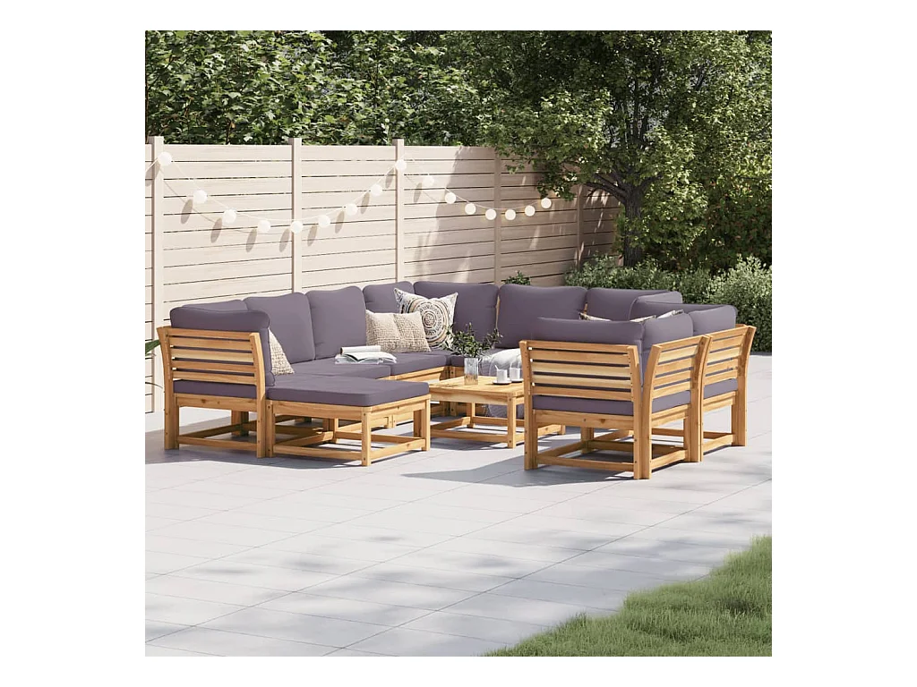 Mobili da giardino con cuscini 10 pezzi in legno massello di acacia