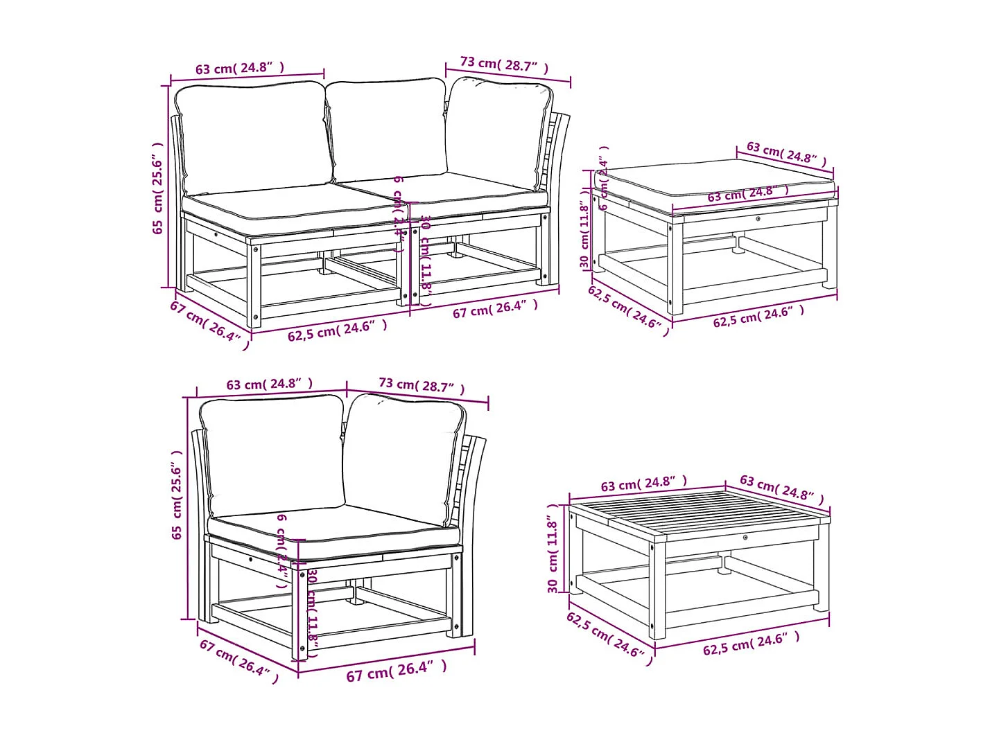Mobili da giardino 6 pezzi con cuscini in legno massello di acacia