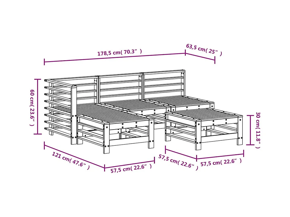 Set Salotto da Giardino 8 pz in Legno Massello di Pino Bianco