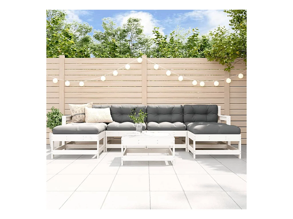 Set Salotto da Giardino 7 pz Bianco in Legno Massello di Pino