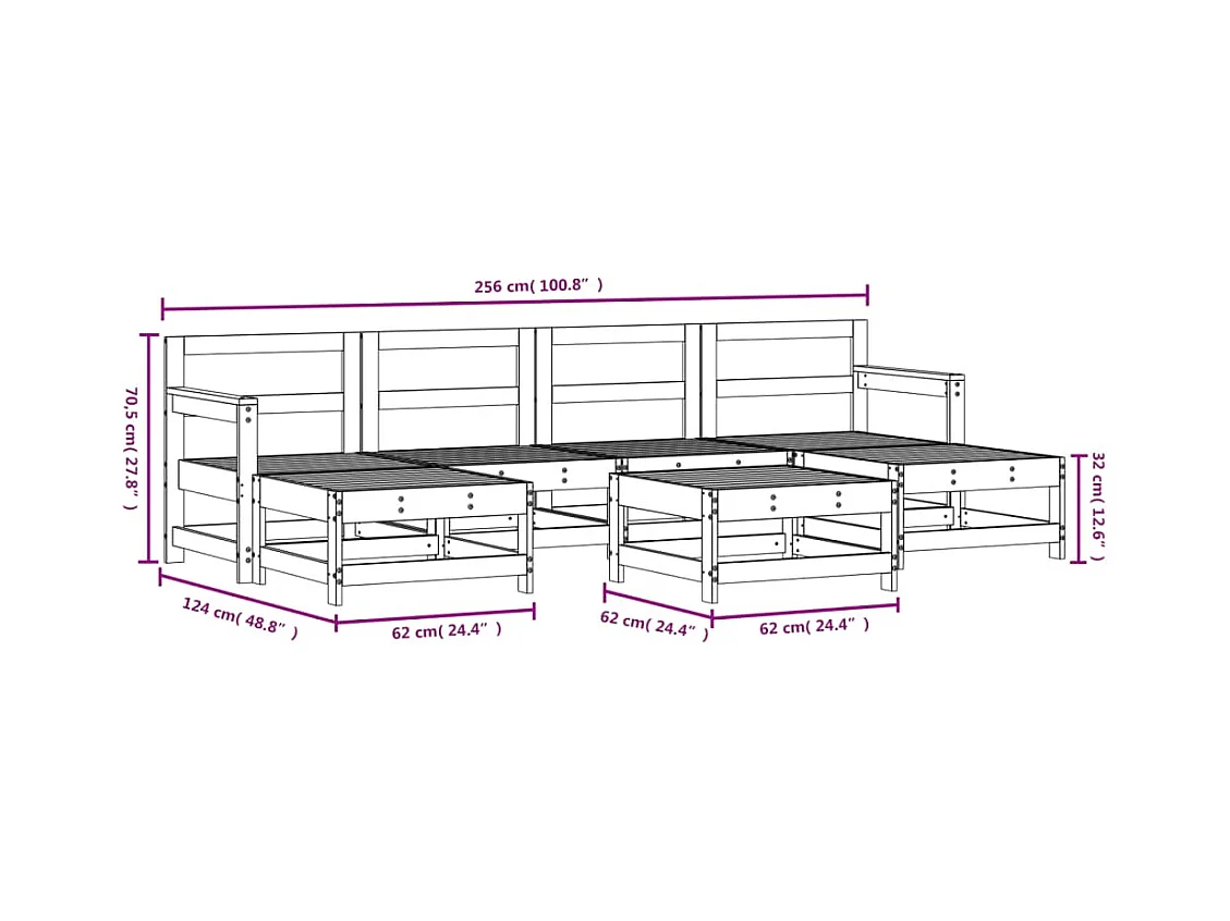 Set Salotto da Giardino 8 pz in Legno Massello di Pino Bianco