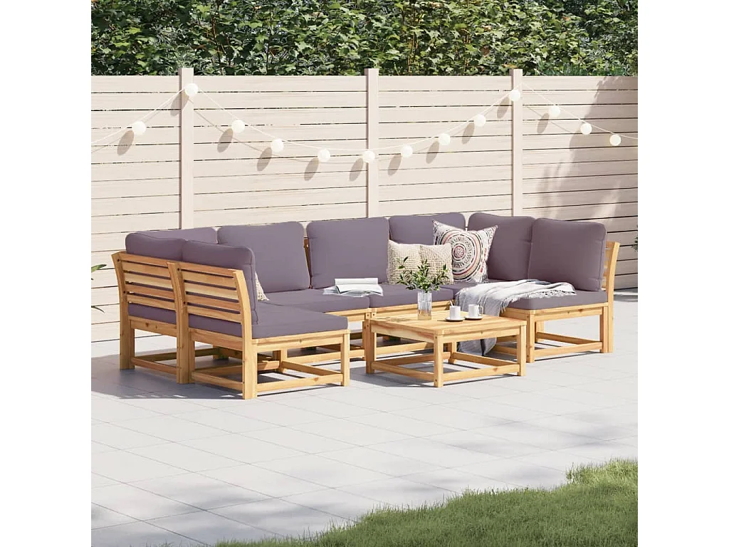 Mobile da giardino con cuscini in legno massello di acacia da 9 pezzi
