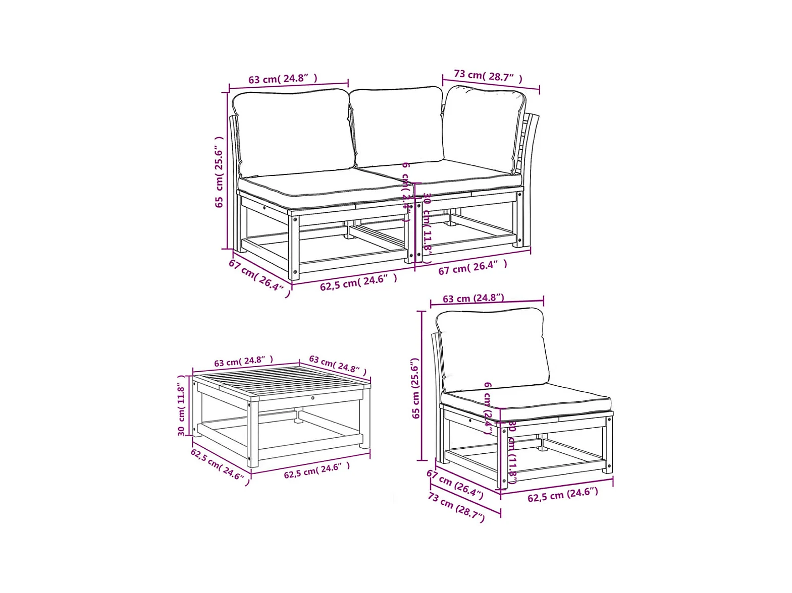 Mobili da giardino 4 pezzi con cuscini Legno massello di acacia
