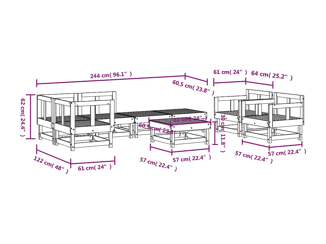 Set Salotto da Giardino 8 pz in Legno Impregnato di Pino