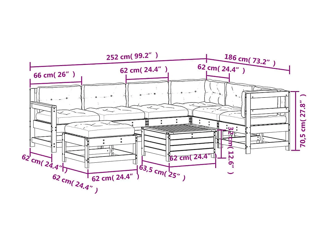 Set Salotto Giardino 8 pz Cuscini Antracite Legno Massello Pino