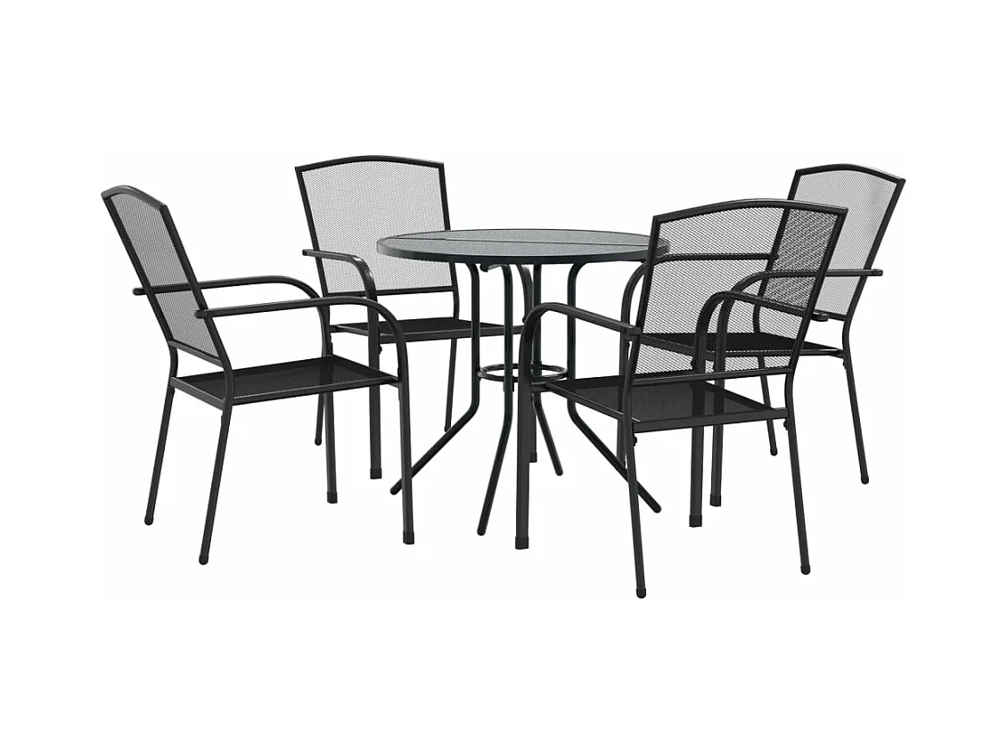 Set Sedie Giardino Impilabili 5pz Antracite Acciaio Verniciato