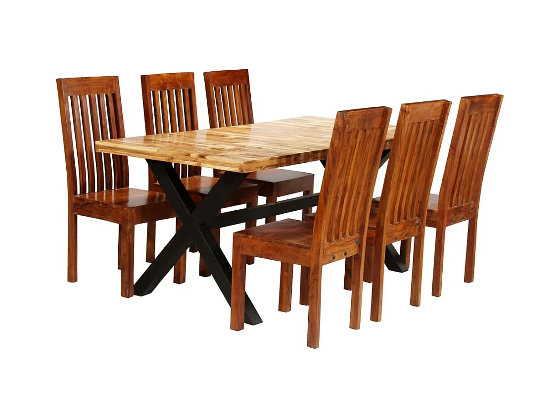Set tavolo da pranzo 7 pezzi in legno di mango e acacia massiccia