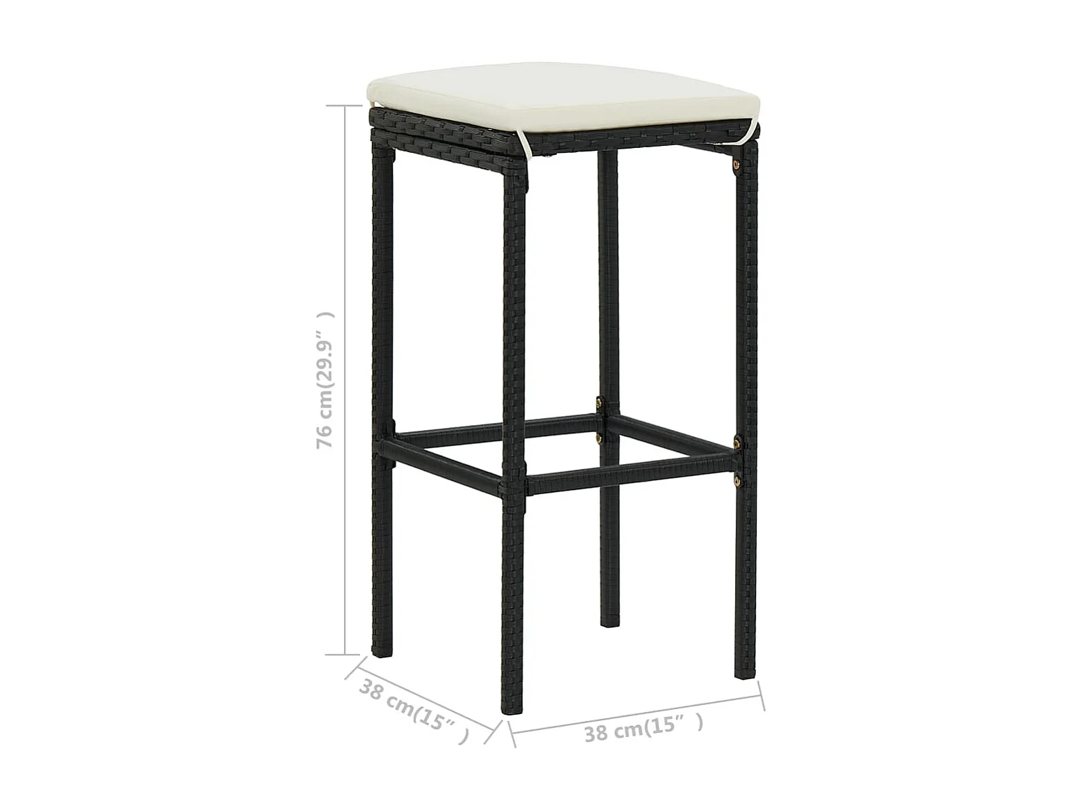 Sgabelli da bar con cuscini, set da 2, neri, resina intrecciata