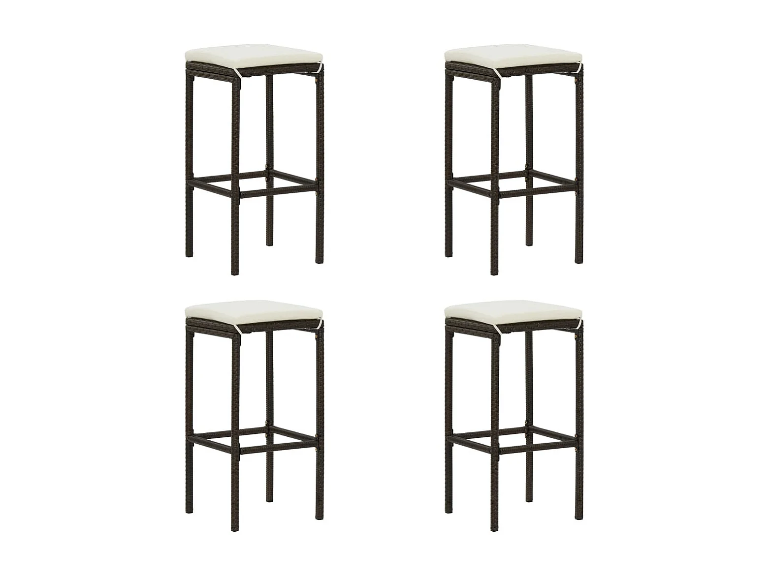 Sgabelli da bar con cuscini set di 4 in resina di vimini marrone